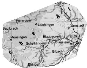 Zwei Schüler der Ulmer Alb haben hier ihre Heimatregion eingezeichnet, das heißt, das Gebiet bezeichnet, das sie als Heimat empfinden. Trage auf diese Weise deine Region in eine Kopie der beiliegenden Baden-Württemberg-Karte ein. Überlege dir dabei, was dich gerade mit dieser Region verbindet.