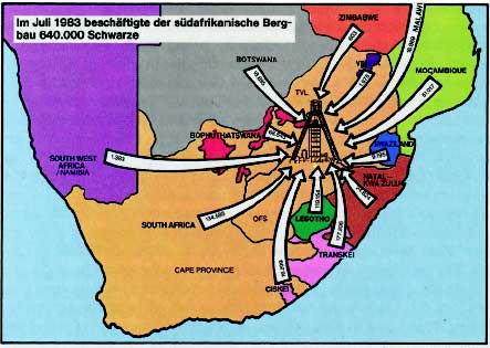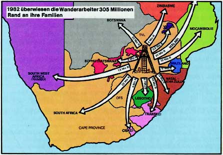 Bis heute gibt es im Bergbau Südafrikas, aber auch in anderen Branchen Arbeiter aus anderen Staaten der Region. Hier eine Momentaufnahme von 1982/83.