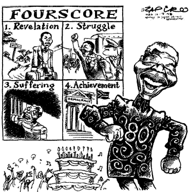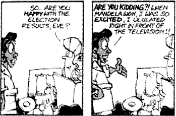 b Nelson Mandela über die erste Wahl seines Lebens Als ich zum Wahllokal ging, weilte mein Geist bei den Heroen, die gefallen waren, damit ich dort sein konnte, wo ich an jenem Tag war... Ich dachte an unsere großen afrikanischen Patrioten, die sich aufgeopfert hatten, damit an diesem Tag Millionen von Südafrikanern ihre Stimme abgeben konnten... Ich ging... nicht allein in das Wahllokal; ich gab meine Stimme gemeinsam mit ihnen allen ab... Ich machte mein X in das Kästchen bei den Buchstaben ANC und ließ dann meinen gefalteten Wahlzettel in eine simple Holzkiste fallen; ich hatte zum ersten Mal in meinem Leben gewählt. Die Bilder der Südafrikaner, die an jenem Tag zur Wahlurne gingen, sind in mein Gedächtnis eingebrannt. Lange Schlangen von geduldigen Menschen, ...alte Frauen, die ein halbes Jahrhundert gewartet hatten, ehe sie zum ersten Mal ihre Stimmen abgeben konnten, und die erklärten, zum ersten Mal in ihrem Leben fühlten sie sich als Menschen, weiße Männer und Frauen, die erklärten, sie seien stolz, doch noch in einem freien Land zu leben. Die Stimmung der Nation während jener Wahltage war erhebend. Gewalttätigkeiten und Bombenanschläge waren eingestellt, und es war, als ob die Nation neugeboren wäre... Wir erzielten 62,6 Prozent* der Stimmen... Einige ANC-Anhänger waren enttäuscht darüber, dass wir die Zweidrittelmehrheit nicht erreicht hatten, doch ich gehörte nicht zu den Enttäuschten. Vielmehr war ich erleichtert, denn wenn wir zwei Drittel der Stimmen auf uns vereinigt hätten und in der Lage gewesen wären, ohne Mitwirkung anderer eine Verfassung durchzusetzen, hätten die Leute argumentiert, wir hätten eine ANC-Verfassung geschaffen und nicht eine südafrikanische. Ich wollte eine echte Regierung der nationalen Einheit. Nelson Mandela: Der lange Weg zur Freiheit, Frankfurt a. M. (S. Fischer) 1994, S.825-27 * National Party 20,4; Inkatha 10,5%