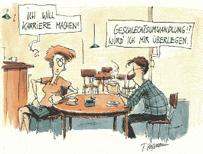 Frauen in Führungspositionen sind in Deutschland nach wie vor unterrepräsentiert. So waren im März 2004 von allen abhängig Beschäftigten 47 Prozent Frauen, an den Führungskräften stellten sie aber nur einen Anteil von 33 Prozent. ... Dass Frauen in den Chefetagen eher selten sind, zeigt sich bei den »Top-Führungskräften« noch stärker. Im März 2004 stuften sich hochgerechnet 819.000 Personen als Erwerbstätige in Positionen mit umfassenden Führungsaufgaben ein. Dazu zählen z.B. Direktorinnen und Direktoren, Geschäftsführerinnen und Geschäftsführer. An dieser Gruppe hatten Frauen einen Anteil von nur 21 Prozent. Entscheidungsträger in Unternehmen und Behörden in Deutschland sind immer noch überwiegend männlich. ... Die Chance, Leitungsfunktionen zu übernehmen, hängt für Frauen stark von der Branche ab: Am höchsten ist sie im Dienstleistungsbereich und in der öffentlichen Verwaltung, wo 53 bzw. 39 Prozent der Führungskräfte Frauen sind. Im Baugewerbe sind nur 14 Prozent aller Führungskräfte weiblich. Statistisches Bundesamt Wiesbaden, Pressemitteilung vom 22. März 2005 ( www.destatis.de/presse/deutsch/pm2005/p1370024.htm ).