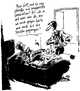 | D 15 Nachwirkungen Die Frage, welche Auswirkungen die Revolte der Achtundsechziger auf längere Sicht gehabt hat, ist nicht leicht zu beantworten. Folgende gesellschaftlichen Veränderungen, vor allem der siebziger Jahre, werden oft mit der Studentenbewegung in Verbindung gebracht. Doch nicht nur der kausale Zusammenhang ist umstritten, auch die Phänomene selbst werden kontrovers beurteilt. Infragestellung von Autoritäten, Abbau hierarchischer Strukturen in Schule und Hochschule Zunahme der individuellen Freiheit (weniger soziale Kontrolle, mehr Toleranz in der Gesellschaft) Entstehen der Frauenbewegung, Fortschritte in der Emanzipation der Frauen Neue Formen des Zusammenlebens (Wohngemeinschaften, Paare ohne Trauschein, mehr Singles) Anderes Verständnis von Kindererziehung ("Elterliche Sorge" statt "Elterliche Gewalt"), Lockerung der Umgangsform zwischen Jung und Alt Entstehen einer Alternativkultur Verstärkte Ideologisierung der Politik (Zerstörung des bisherigen gesellschaftlichen Konsenses) Neue Formen politischer Beteiligung, Forderung nach "Politik von unten" (Mitbestimmung, Demokratisierung, Bürgerinitiativen, neue soziale Bewegungen) Ausbildung unkonventioneller bis illegaler Formen des politischen Protests Auflösung traditioneller Bindungen (Wertewandel, Werteverfall?) D 16 Zur Bewertung der Studentenrevolte a) Karl Dietrich Bracher Ebenso wichtig wie die unmittelbaren politischen Konsequenzen erscheinen die psychologischen und begriffspolitischen Auswirkungen des radikalen Progressismus. Dazu gehörte, dass nun der Ruf nach "Demokratisierung" als Mitbestimmung bis in die untersten Einheiten von Organisationen, Betrieben, Schulen von allen Seiten ertönte, dass betont systemkritisch von Basis-Demokratie und Bürgerinitiativen, von Spätkapitalismus und Spätbürgertum die ständige Rede war... Zurück blieb ein ideologisches Schlachtfeld, dem heute zunehmend nostalgische Erinnerungen gelten... Der geistige Ertrag des mit so viel Enthusiasmus und Aufwand begonnenen Aufbruchs blieb umstritten, und der weitere Verlauf hat durch die überstürzten, zum Teil naiven Maßnahmen der Regierung (im Bildungssystem, durch Herabsetzung des Mündigkeitsalters), vor allem aber wegen der gewaltsamen und terroristischen Auswirkungen durch den weiteren Verlauf zu zahlreichen menschlichen und politischen Enttäuschungen geführt... (Die) "antiautoritäre Welle" blieb bald stecken: es wuchs eine Stimmung der Skepsis, Angst vor der Zukunft, Verlangen nach anderen Lebensformen, Nostalgie. Zeit der Ideologien, Stuttgart (Deutsche Verlagsanstalt) 1982, S. 307 f. und S. 313. b) Franz Schneider "APO" bedeutete zwar dem geflügelten Wortlaut nach, dass die Opposition außerparlamentarisch war, aber sie war weithin auch ... antiparlamentarisch. Dies bedeutet nicht nur, dass sich diese Opposition als außerhalb jenes Rahmens stehend verstand, den unsere durch die Verfassung gegebene Ordnung für politische Alternativen institutionell - eben in Form von Parlament und Parteien - bereithält. Es impliziert auch als Programm, dass der Parlamentarismus als Lebenslüge einer verschleierten Klassenherrschaft zu entlarven und zu ersetzen sei. Die aggressive Stoßrichtung der politischen Agitation zielte vor allem auf das Parlament, weil es eben die Volksvertretung ist, die gegenüber jeder Art von revolutionärem Gehabe das Fundament der stärksten Abwehr bietet. Franz Schneider (Hg.): Dienstjubiläum einer Revolte, München (v. Hase & Koehler) 1993, S. 49. c) Willy Brandt Auszug aus einer Rede auf dem SPD-Kongress "Die junge Generation und die Zukunft der Demokratie" im Januar 1969 in Bad Godesberg Die Jugend erwartet vorausschauendes Denken statt taktischer Manöver, Zivilcourage statt Opportunismus, Mut zur Unbequemlichkeit statt Appelle an die Bequemlichkeit. Politische Macht und ihre Handhabung müssen durchschaubar sein. Es ist für mich unbestreitbar, dass man die im Grundsatz geregelte staatliche Ordnung vom Grundsatz her in Zweifel ziehen darf. Nur muss man wissen, wo man reaktionären und zerstörenden Kräften hilft; man muss wissen, weshalb man den Widerstand derer findet, die unsere verfassungsmäßige Ordnung für verteidigungswert und entwicklungsfähig halten. In Ländern, wo sie nicht vorhanden sind, kämpft die studentische Jugend für die elementaren demokratischen Freiheiten. Anderswo werden ebendiese Freiheiten als formal abgetan. Hier steckt ein Widerspruch, den man nicht mit Parolen auflösen kann. Begegnungen und Einsichten. Die Jahre 1960-1975, Hamburg (Hoffmann und Campe) 1976, S. 272. D 17 Ein 68er als Vater