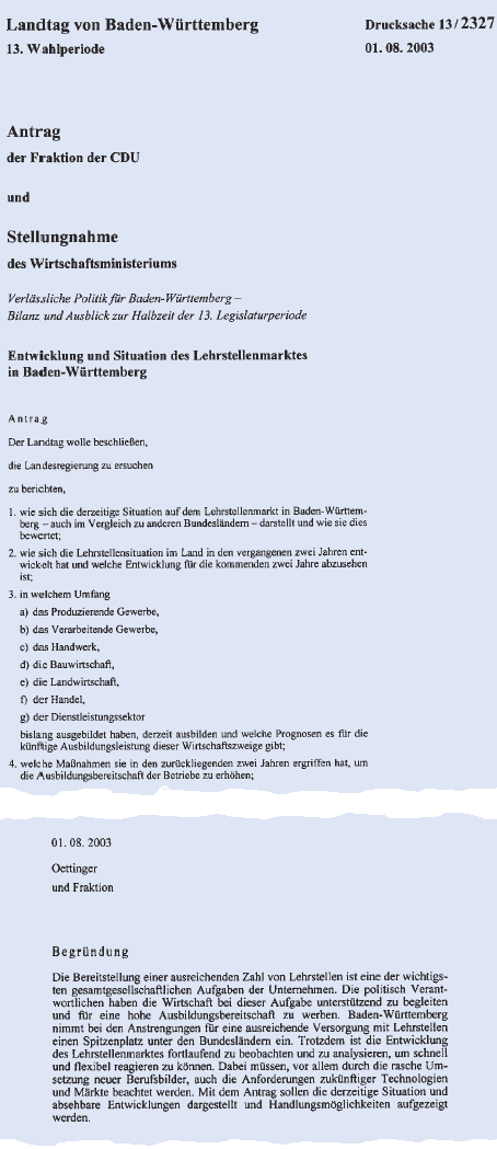 Quelle: Plenarprotokoll 12/105 des Landtags von Baden-Württemberg vom 21. Februar 2001, S. 8322 (Anlage)