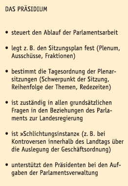 Der Landtagspräsident, seine Stellvertreter(innen), das Präsidium
